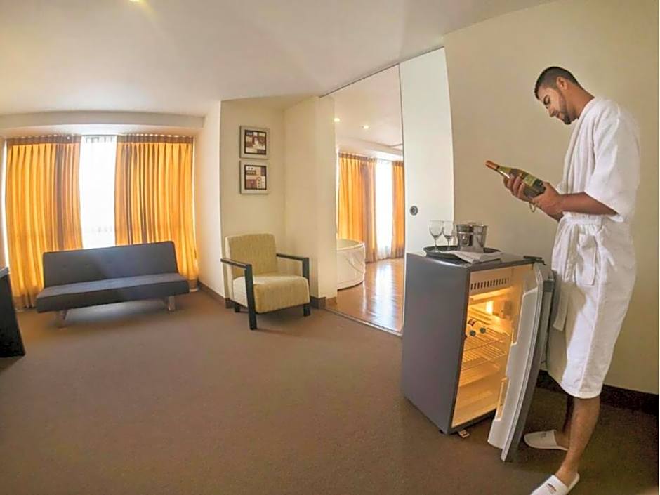 This quadruple room features a hot tub. Featuring free toiletries, this quadruple room includes a private bathroom with a bath, a shower and a hairdryer. The spacious air-conditioned quadruple room features a flat-screen TV with cable channels, soundproof walls, a mini-bar, a seating area as well as city views. The unit has 1 bed.